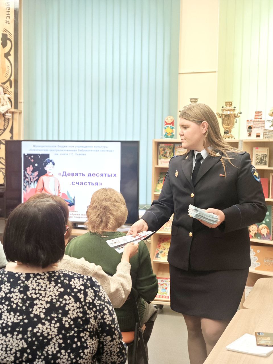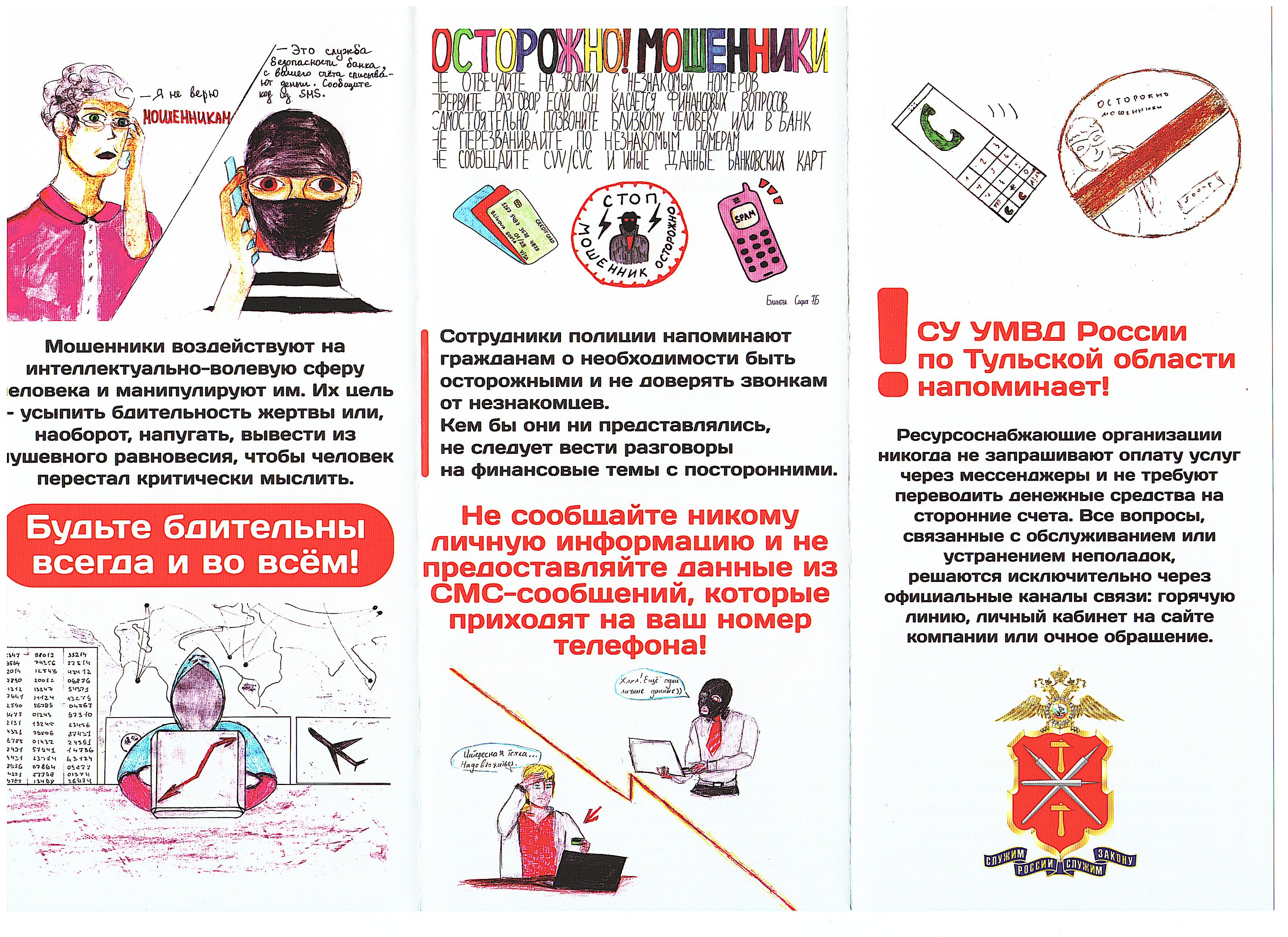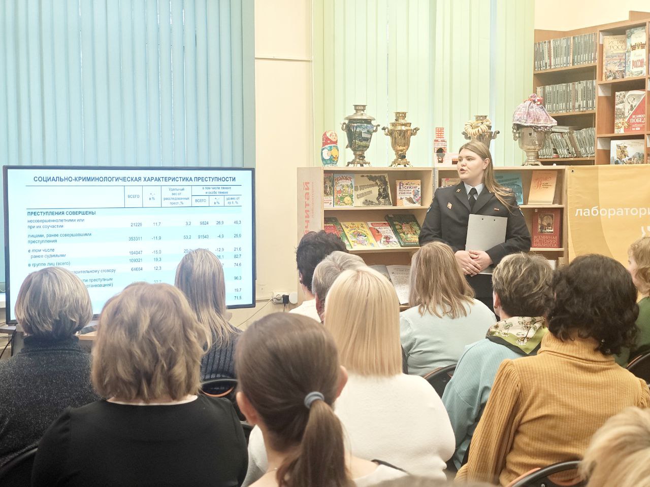 В продолжение семинара перед участниками выступила старший следователь контрольно-методического отдела СУ УМВД России по Тульской области, капитан юстиции Ксения Панова. Она провела беседу о профилактике вовлечения несовершеннолетних в преступления, связанные с мошенничеством, и отметила значимость работы библиотек по правовому воспитанию юных читателей. Все участники получили памятки СУ УМВ России по Тульской области с рекомендациями по предотвращению мошенничества. Особенность этих памяток – детские рисунки, выполненные учащимися седьмых классов МБОУ «ЦО – гимназия № 30».