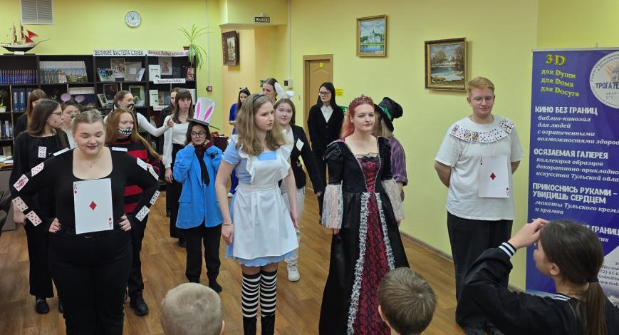 Тульская областная специальная библиотека для слепых совместно с Институтом детства ТГПУ им. Л.Н. Толстого реализует цикл интерактивных встреч «Книжные приключения: открой свой мир». Первая встреча «Где логика? Здесь – чудо» была организована для школьников Центра образования № 9 им. генерала А.Н. Ермакова и приурочена к 160-летию первой публикации книги Льюиса Кэрролла «Алиса в Стране чудес».