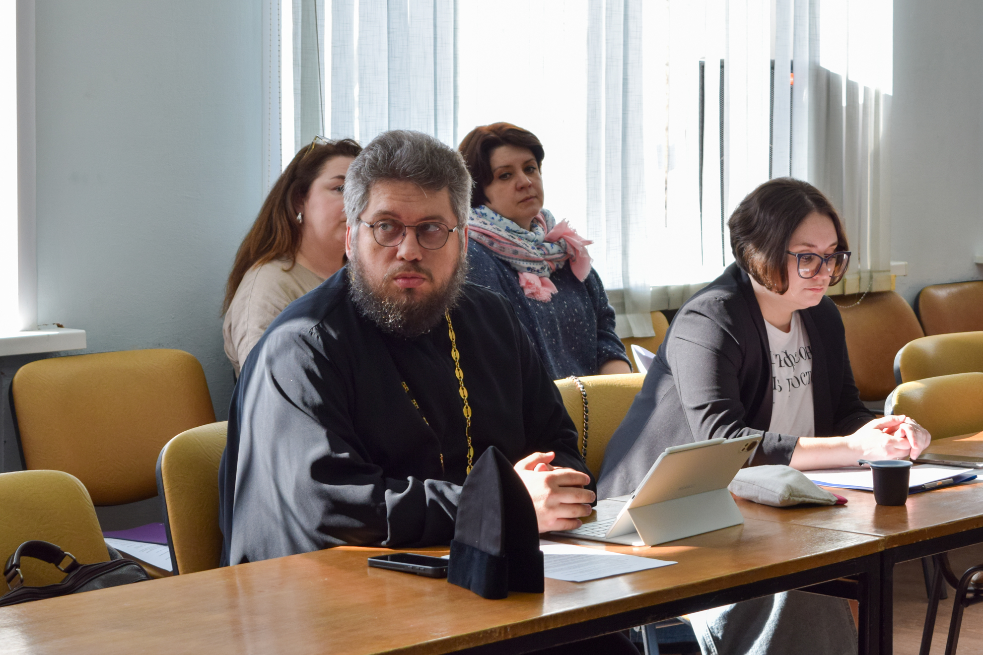 Иерей, проректор по научно-богословской работе Тульской духовной семинарии Николай Евсеев рассказал участникам круглого стола про историю духовной жизни в Тульском крае до учреждения Тульской епархии, в том числе о создании и открытии первых духовных учебных заведений.