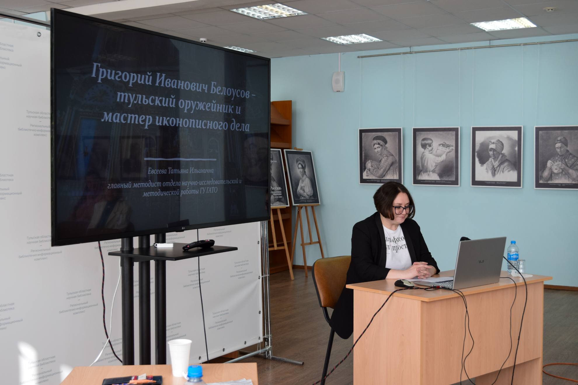 Главный методист отдела научно-исследовательской работы Государственного архива Тульской области Татьяна Евсеева прочитала доклад о Григории Ивановиче Белоусове – тульском оружейнике и мастере иконописного дела, кисти которого принадлежали нескольких икон иконостаса Успенского собора.